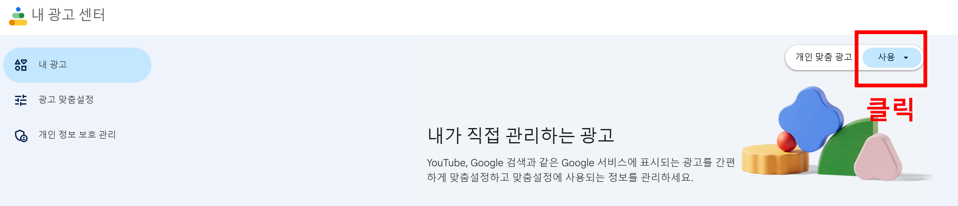 1. Google 광고 설정에서 개인맞춤형 광고 끄기