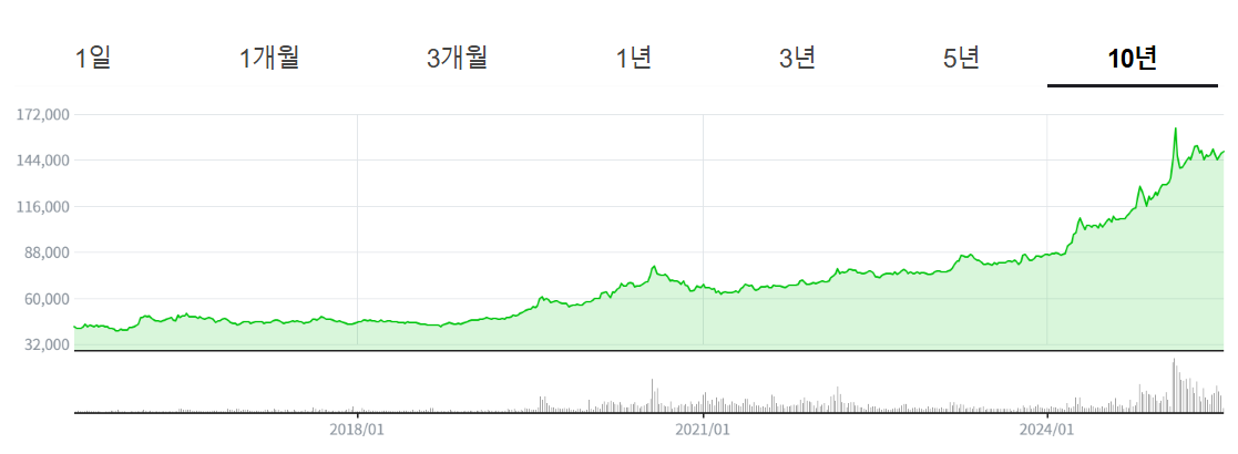 - 🔺 1년 최고가: 168,500원 / 🔻 1년 최저가: 105,370원