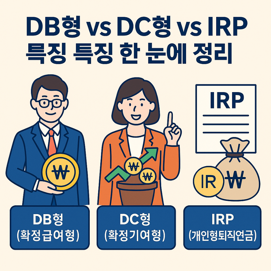 퇴직연금은 노후 자산 준비의 핵심 제도로, 직장인뿐만 아니라 소득이 있는 모든 이들이 알아야 할 중요한 금융 시스템입니다. 이번 글에서는 DB형(확정급여형), DC형(확정기여형), IRP(개인형퇴직연금)의 특징과 장단점을 명확히 비교하고, 각 제도별 활용 전략을 정리했습니다.